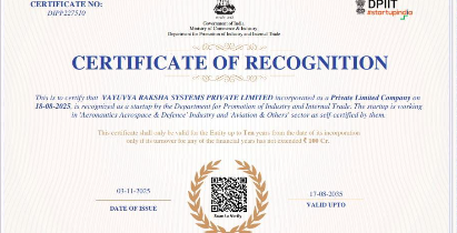 Recognised by the Department for Promotion of Industry and Internal Trade (DPIIT) as an authorised defence startup, validating our innovation, credibility, and contribution to India’s strategic technology ecosystem.